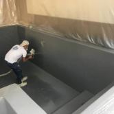 Piscine en structure banchée, piscine avec revêtement d’intérieur en polyester, sol et mur de la piscine