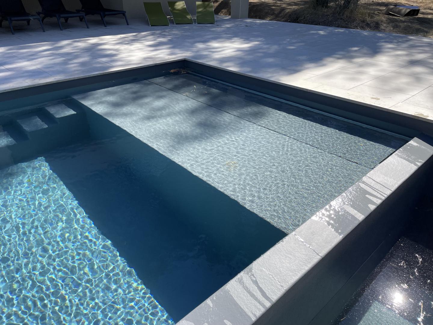 Rénovation piscine dépose et repose d’un revêtement en fibre de verre et application de 2 couches de gelcoat .
