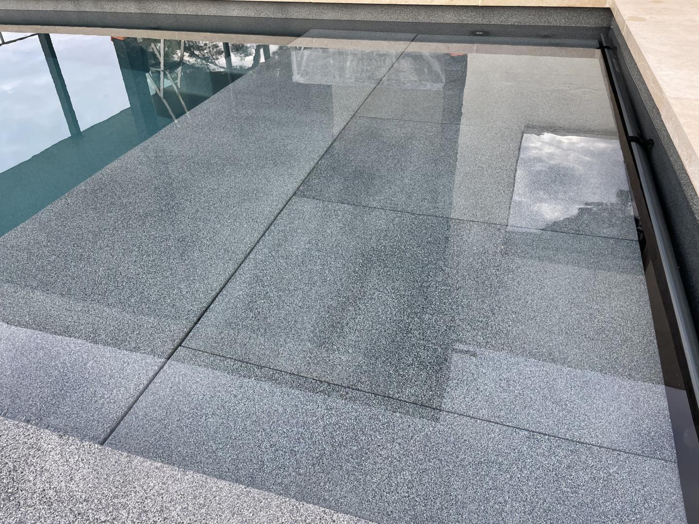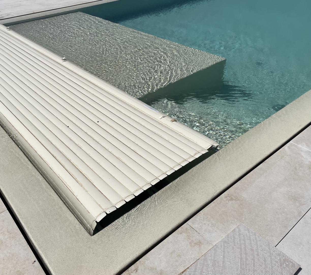 Étanchéité/Reprise totale du gelcoat de ma piscine avec retrait de l'ancien support par ponçage mécanique.