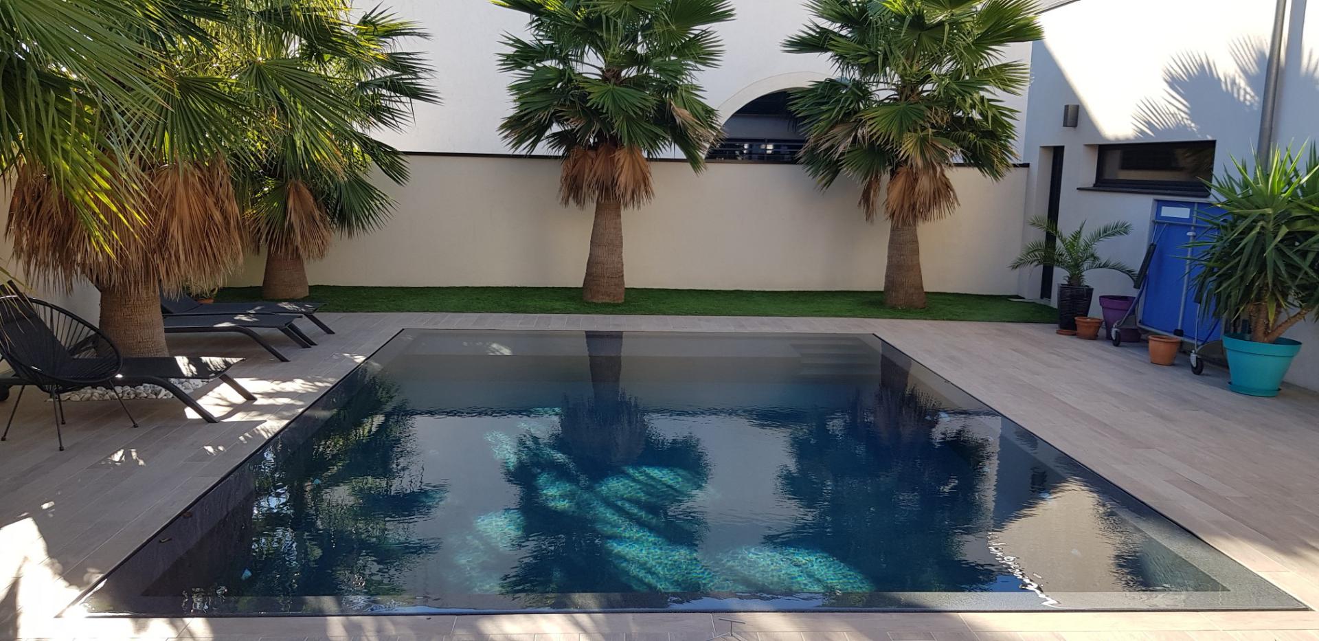 Sol et mur de piscine, piscine en structure banchée, revêtement